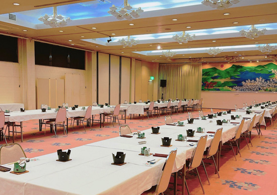 教育旅行のお食事会場として、最大200名様まで収容可能な会場をご用意しております。